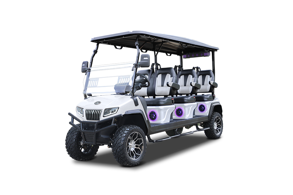 The Maverick 6 Plus is the top-tier model in the Maverick line. With seating for six, it’s ideal for larger groups, events, or upscale resort use. This Plus version comes equipped with CarPlay, LED-lit speakers, and a 151.6” frame designed for presence and performance. Storage, sound, and safety are all maximized in this high-end powerhouse