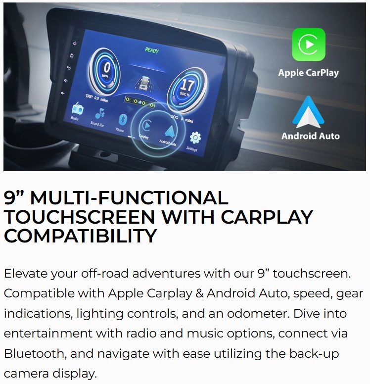 With a 9” touchscreen supporting CarPlay, LED-lit speakers, and integrated safety tech, the Ranger 2+2 Plus delivers a luxury experience in a practical package. Whether you’re exploring the course or driving around the neighborhood, this version adds polish and personalization to every mile