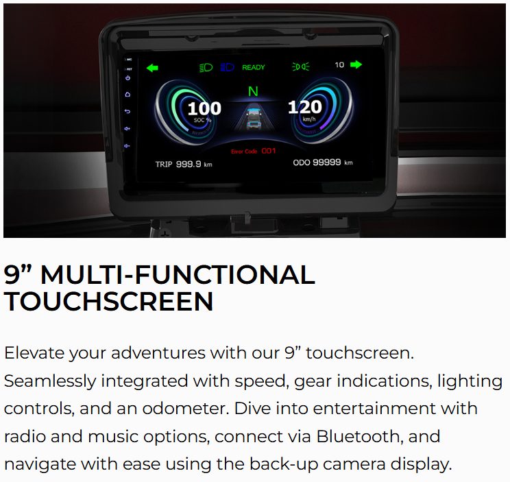 The Ranger 6 Plus is the perfect blend of utility and entertainment. With radial tires, foldable luxury seats, a rear trunk, and CarPlay touchscreen, it’s a ride designed for hospitality, campus shuttling, or large-family transport. All the same core features—like the 6.3kW motor and 8-year battery warranty—make this a smart, future-forward investment.